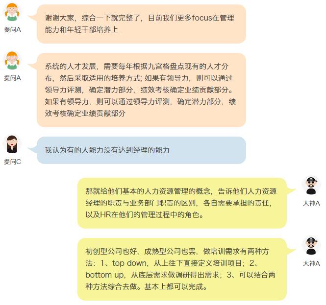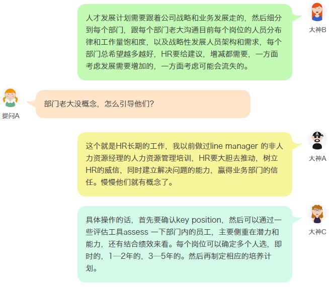 提问A各位,请教一下,应该如何做互联网公司的年度人才发展规划啊提问B同问,人才发展计划感觉很大,不知道怎么做提问C各位,请教一下,应该如何做互联网公司的年度人才发展规划啊这个项目很大,需要详细分析组织...