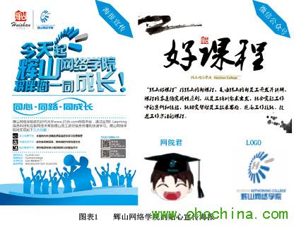 为了让网络学院深入人心,辉山网络学院项目负责人及其成员将贴心的宣传工作做到极致,不仅设计了专属的Logo和Slogan,还塑造了萌萌的网络学院形象“网院君”,以及多款精美的X架、口袋卡及不干胶贴,开通了“辉山网络学院”的微信公众平台作为企业培训与学习的宣传窗口(见图表1)。
