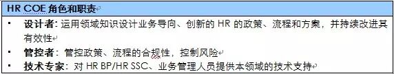 HR COE (Center of Expertise)通常扮演如下几个角色: